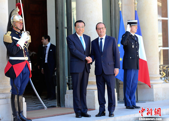 中新社巴黎6月30日电 (记者 欧阳开宇)中国国务院总理李克强当地时间30日下午在巴黎爱丽舍宫会见法国总统奥朗德。