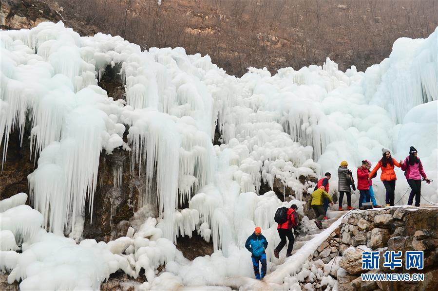 1月3日,游客在顺平县龙居生态风景区观赏冰瀑景观。进入冬季,地处太行山深处的河北省顺平县龙居生态风景区形成独特的人工冰瀑景观,形态奇特、晶莹剔透的冰瀑奇景蔚为壮观,吸引众多游客前来观赏游玩。新华社记者 朱旭东 摄 图片来源:新华网