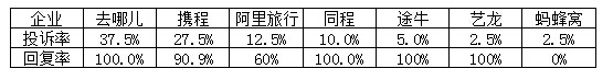 2016年11月各企业旅游投诉前七位投诉回复率