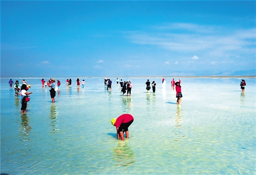 游客在青海茶卡盐湖漫步游玩。 经济日报-中国经济网记者 翟天雪摄
