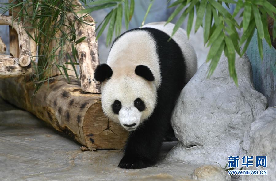 8月18日,大熊猫贡贡在园区内活动。新华社记者 郭程 摄